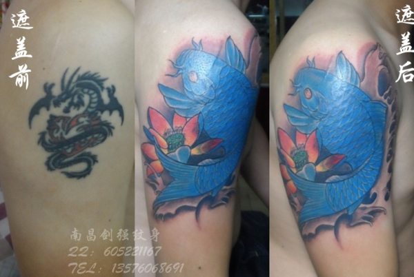鲤鱼遮盖纹身、南昌纹身店、南昌剑强纹身遮盖_鲤鱼纹身图案大全_纹身图吧