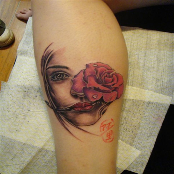 小腿美女与玫瑰纹身图片_玫瑰花纹身图案大全_纹身图吧