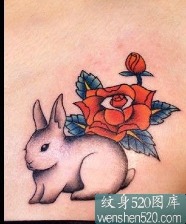 兔子和一朵玫瑰花纹身图案_玫瑰花纹身图案大全_纹身图吧