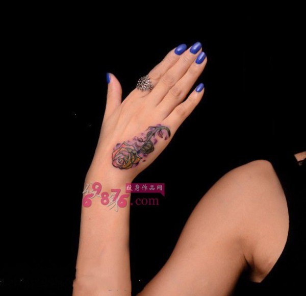 潮男手背大红玫瑰花纹身_玫瑰花纹身图案大全_纹身图吧