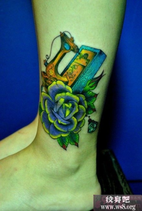 玫瑰缝纫机脚踝纹身图案_玫瑰花纹身图案大全_纹身图吧