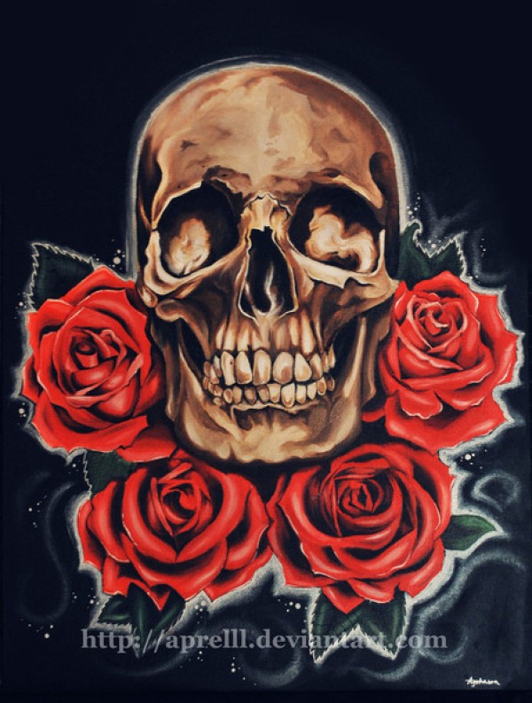 玫瑰与骷髅头纹身图片_玫瑰花纹身图案大全_纹身图吧