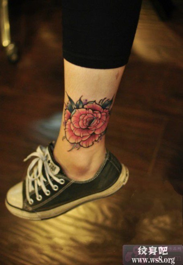 娇艳粉玫瑰脚踝纹身图案_玫瑰花纹身图案大全_纹身图吧