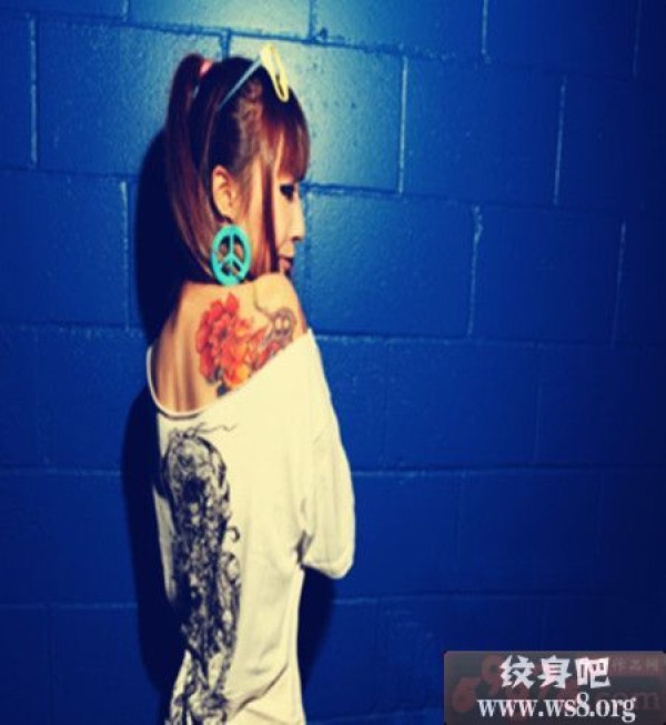 时尚美女肩部玫瑰花纹身图案_玫瑰花纹身图案大全_纹身图吧