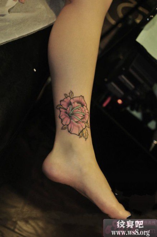 脚踝美丽粉玫瑰纹身图案_玫瑰花纹身图案大全_纹身图吧