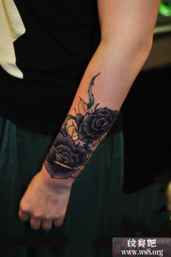 小臂黑色玫瑰花时尚纹身图案_玫瑰花纹身图案大全_纹身图吧