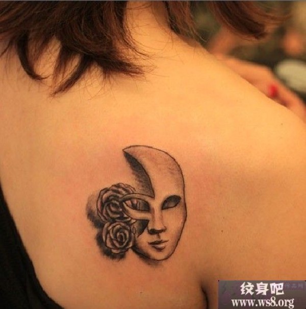 后肩欧美面具玫瑰纹身图案_玫瑰花纹身图案大全_纹身图吧