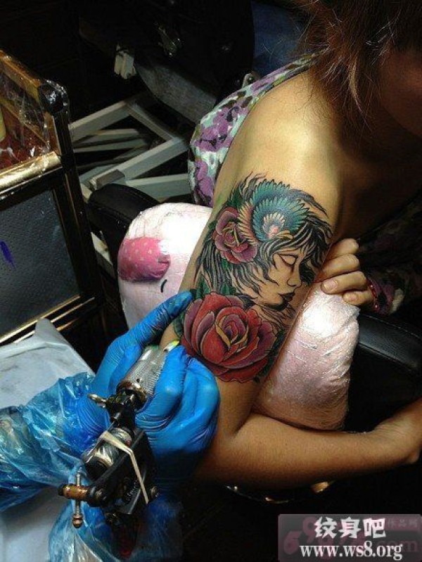 手臂女人与玫瑰纹身图案现场图案_玫瑰花纹身图案大全_纹身图吧