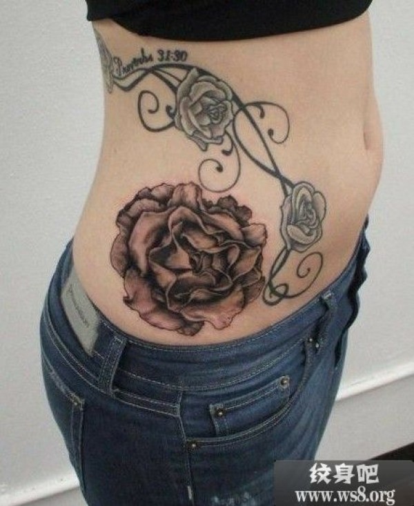 性感腰部玫瑰纹身图图案_玫瑰花纹身图案大全_纹身图吧