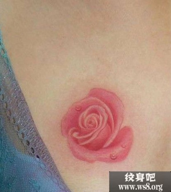 性感胸部漂亮粉色的玫瑰花图案_玫瑰花纹身图案大全_纹身图吧