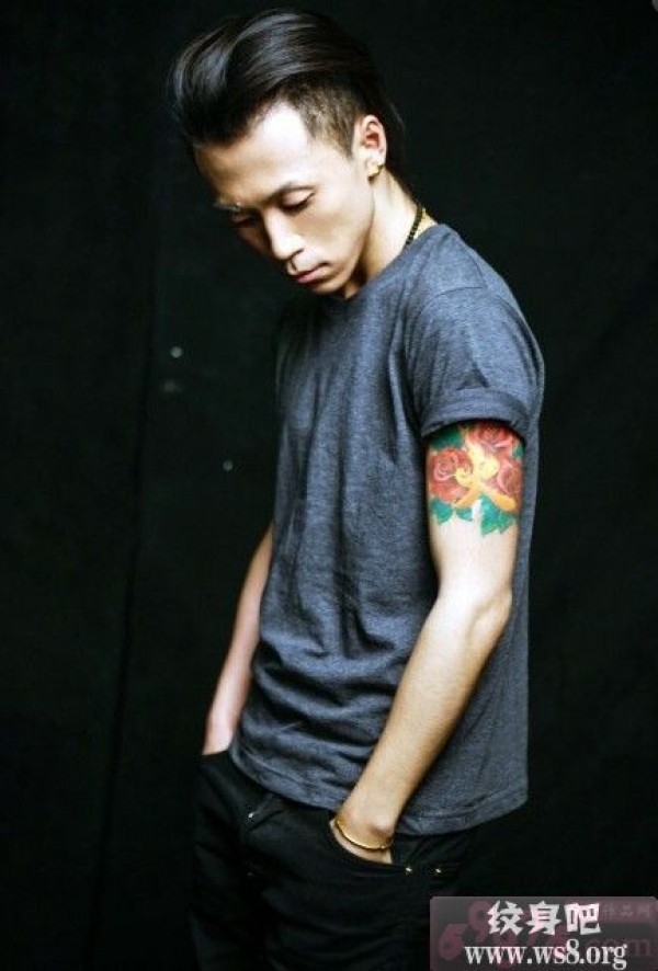 韩火火手臂玫瑰图案_玫瑰花纹身图案大全_纹身图吧