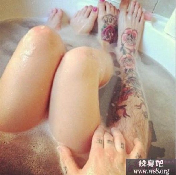 情侣脚部玫瑰藤蔓图案_玫瑰花纹身图案大全_纹身图吧