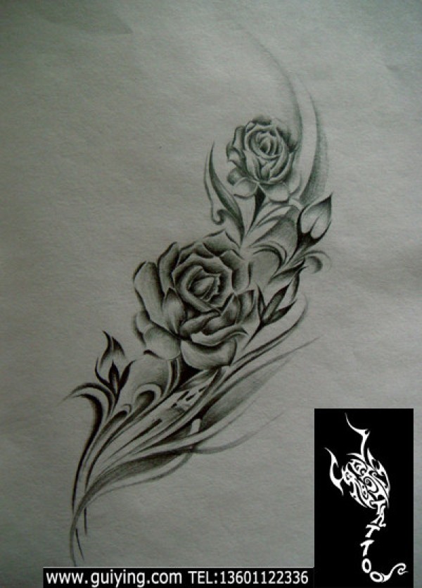 玫瑰花纹身手稿_玫瑰花纹身图案大全_纹身图吧