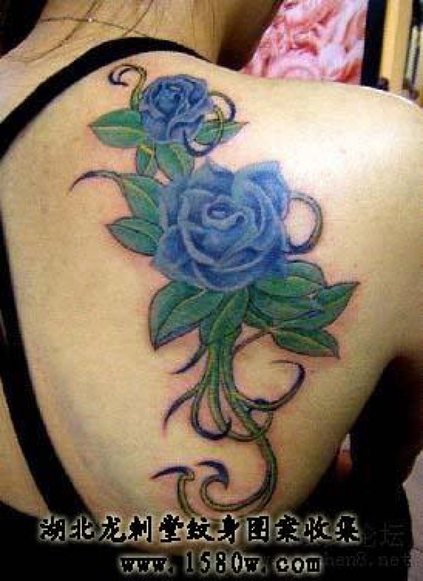蓝玫瑰纹身背部纹身_玫瑰花纹身图案大全_纹身图吧