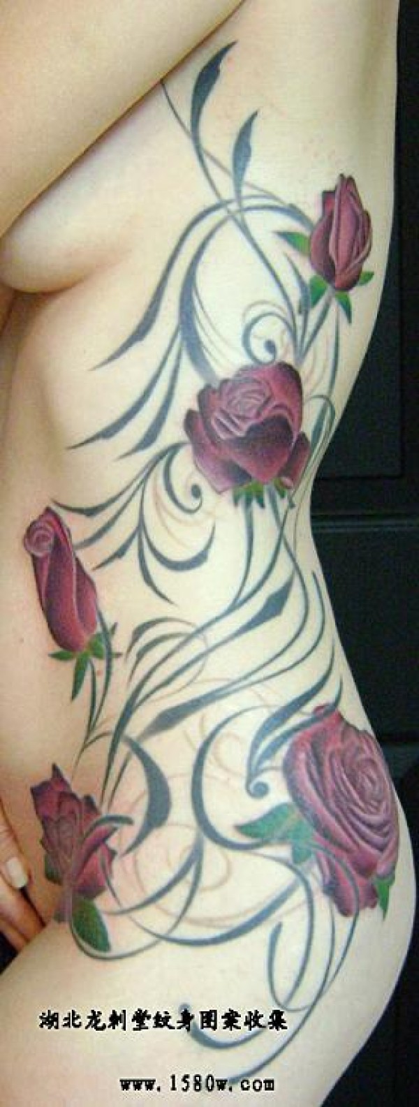 藤蔓玫瑰纹身腰部纹身_玫瑰花纹身图案大全_纹身图吧