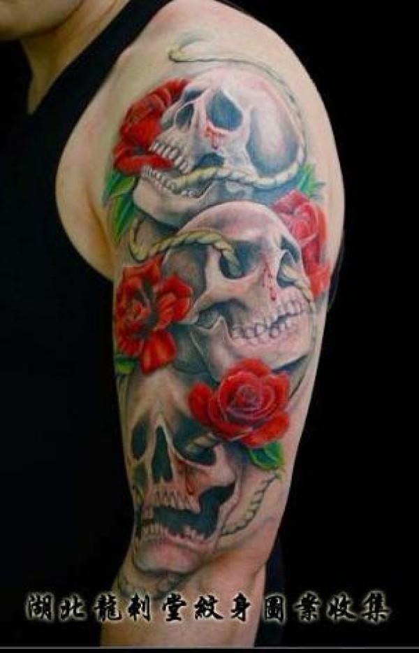 玫瑰骷髅纹身图案_玫瑰花纹身图案大全_纹身图吧