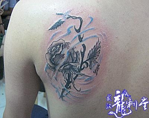 肩胛玫瑰花纹身_玫瑰花纹身图案大全_纹身图吧