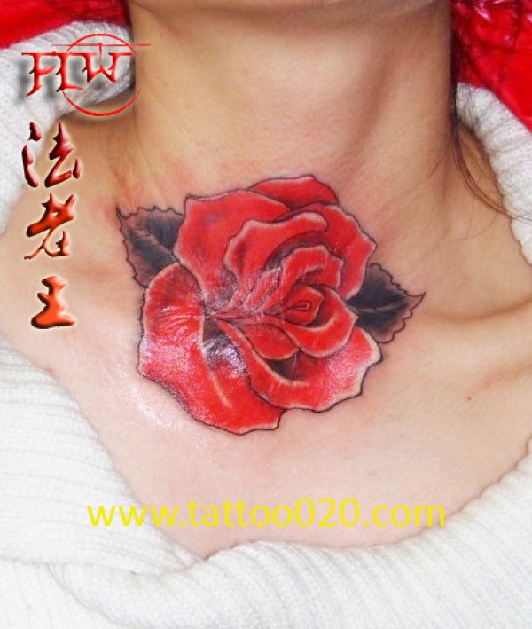 时尚胸部玫瑰花纹身_玫瑰花纹身图案大全_纹身图吧