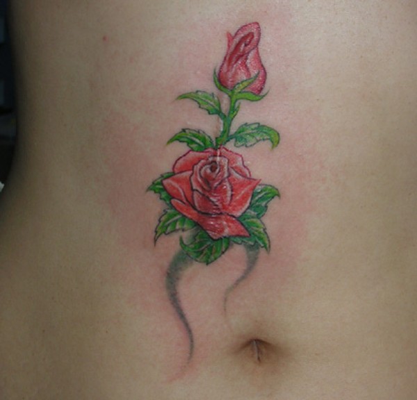 性感蕾丝玫瑰腹部纹身_玫瑰花纹身图案大全_纹身图吧