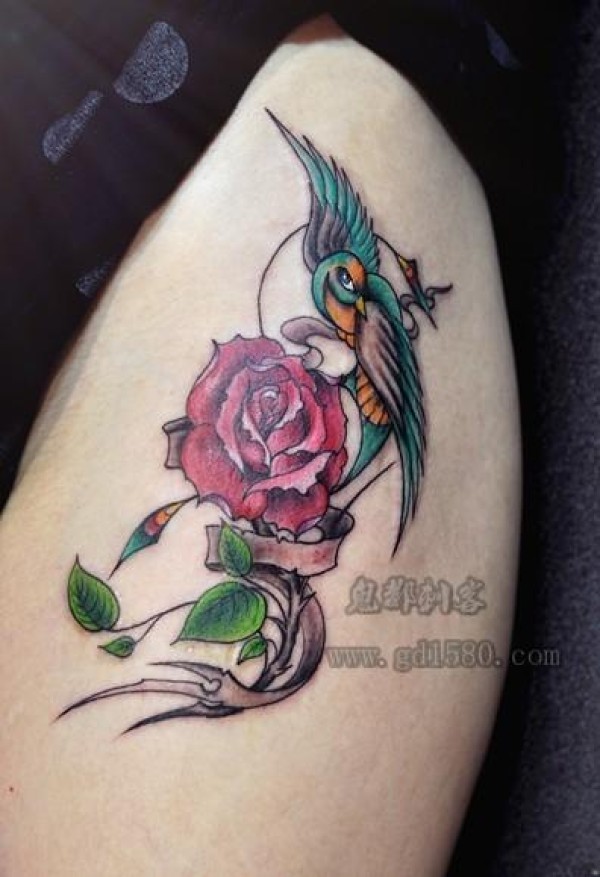 玫瑰花幸运鸟纹身_玫瑰花纹身图案大全_纹身图吧