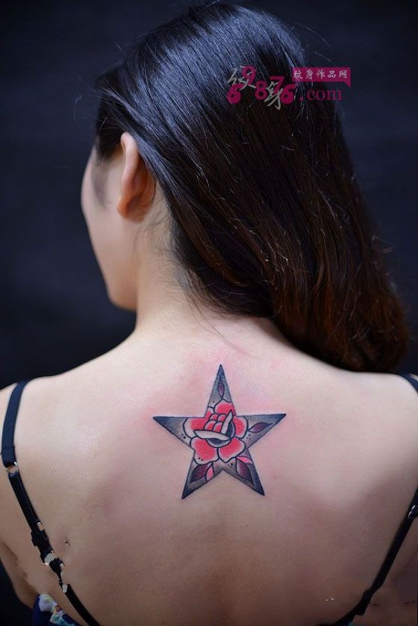 后背玫瑰星星时尚纹身_玫瑰花纹身图案大全_纹身图吧