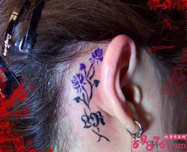 耳后小玫瑰纹身图片_玫瑰花纹身图案大全_纹身图吧