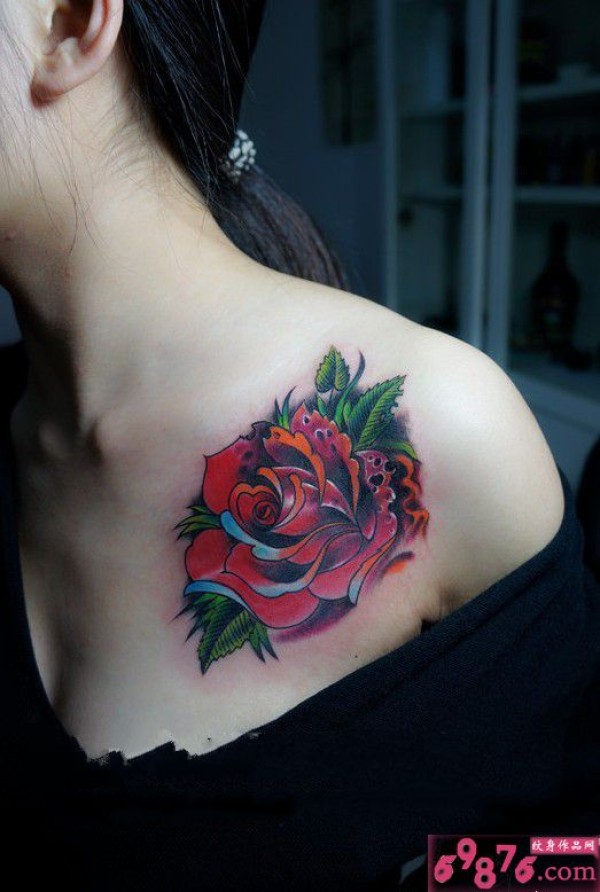 时尚胸部玫瑰花纹身_玫瑰花纹身图案大全_纹身图吧