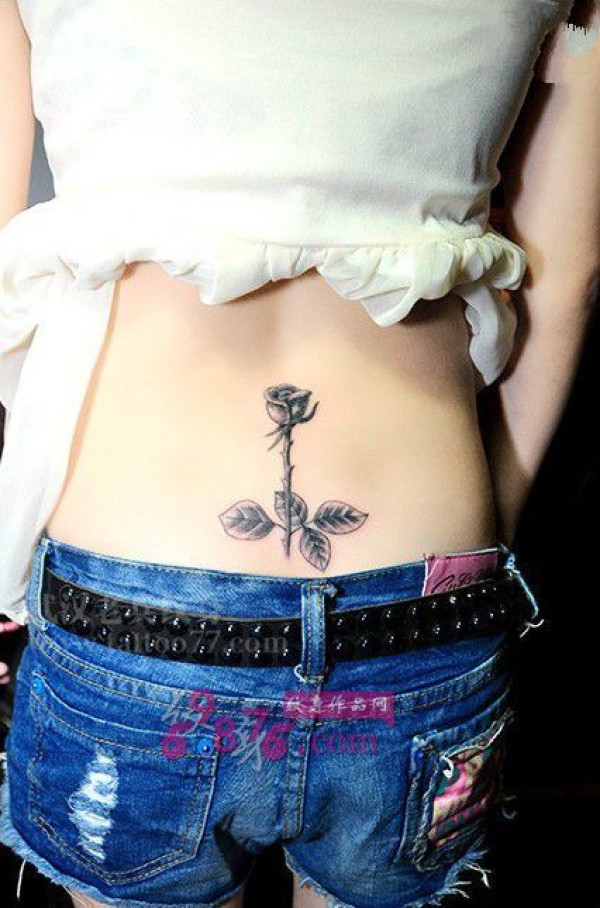 小清新黑灰玫瑰腰部纹身_玫瑰花纹身图案大全_纹身图吧