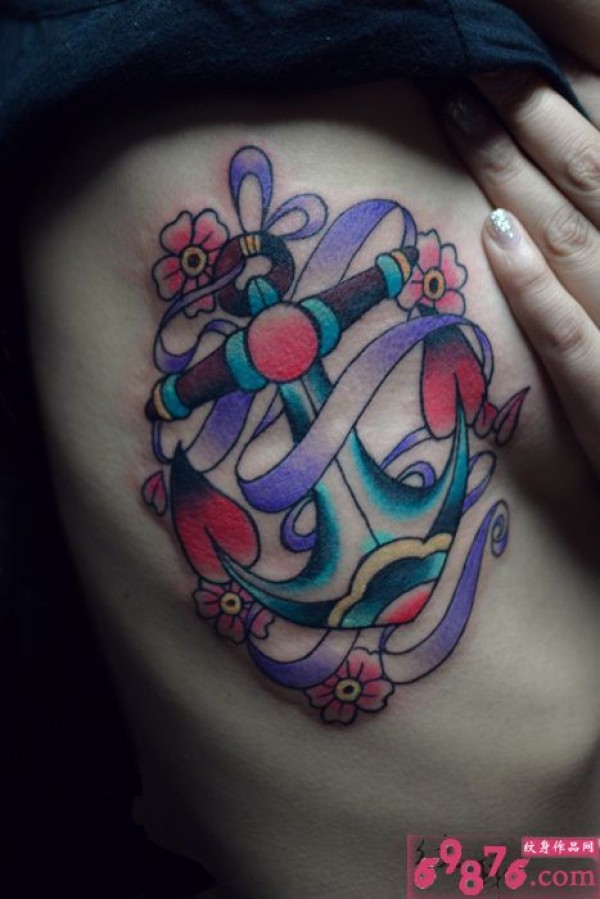 性感腰部船锚玫瑰刺青_玫瑰花纹身图案大全_纹身图吧