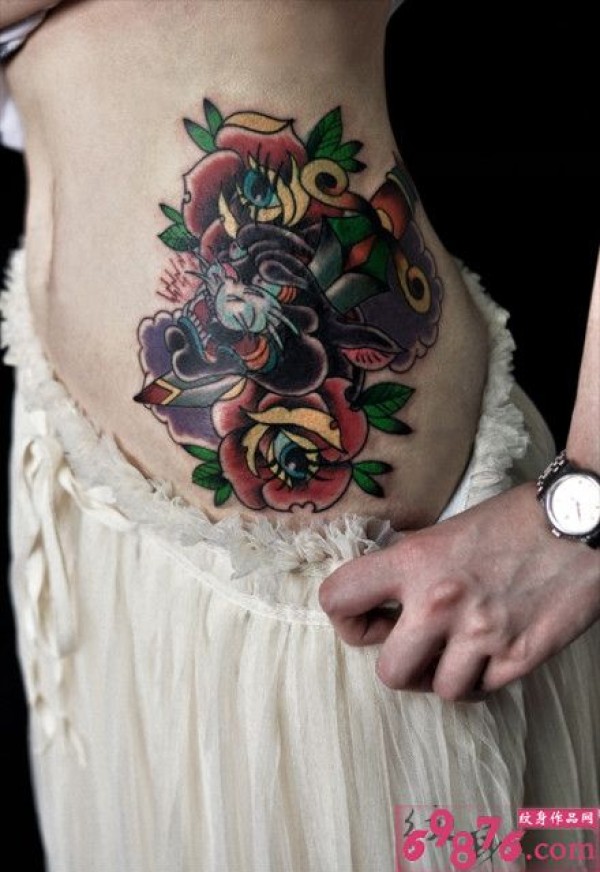 腰部创意眼睛玫瑰刺青_玫瑰花纹身图案大全_纹身图吧