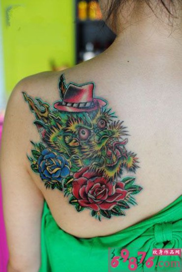 创意动物玫瑰纹身_玫瑰花纹身图案大全_纹身图吧