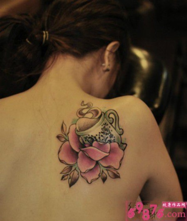 经典咖啡杯玫瑰肩部纹身_玫瑰花纹身图案大全_纹身图吧