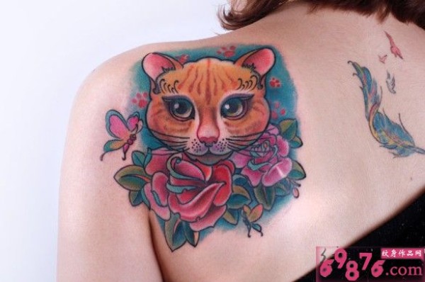 可爱猫咪头像玫瑰纹身_玫瑰花纹身图案大全_纹身图吧