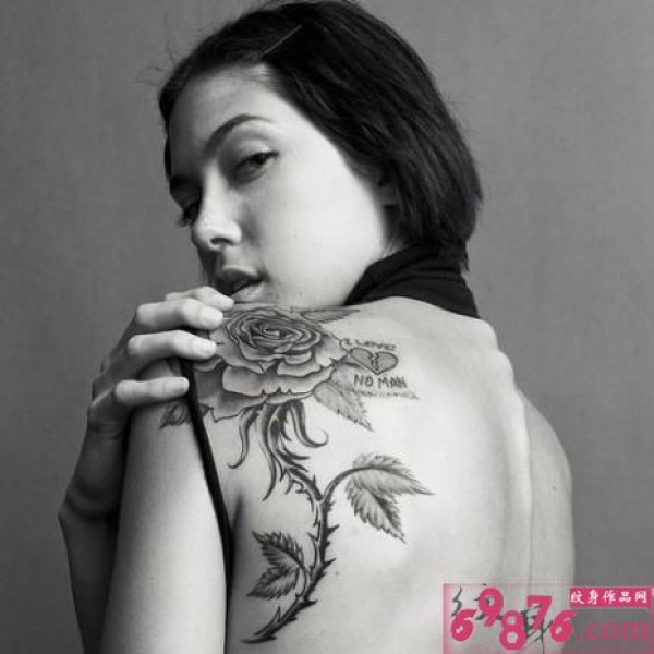 女生肩部欧美黑白玫瑰_玫瑰花纹身图案大全_纹身图吧
