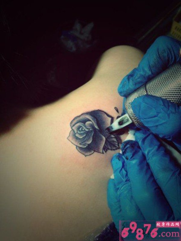 女生肩部美丽玫瑰纹身现场_玫瑰花纹身图案大全_纹身图吧