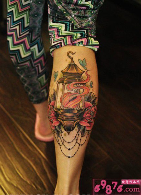 小腿油灯玫瑰欧美纹身_玫瑰花纹身图案大全_纹身图吧