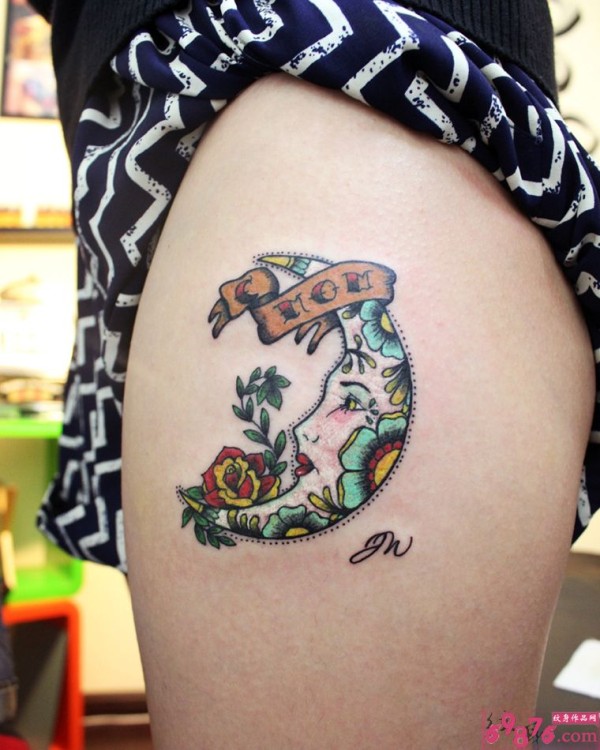 玫瑰月亮美女头像纹身_玫瑰花纹身图案大全_纹身图吧