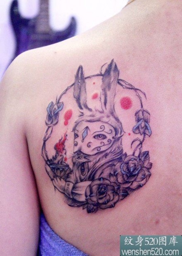 女性背部兔子玫瑰花纹身图案_玫瑰花纹身图案大全_纹身图吧