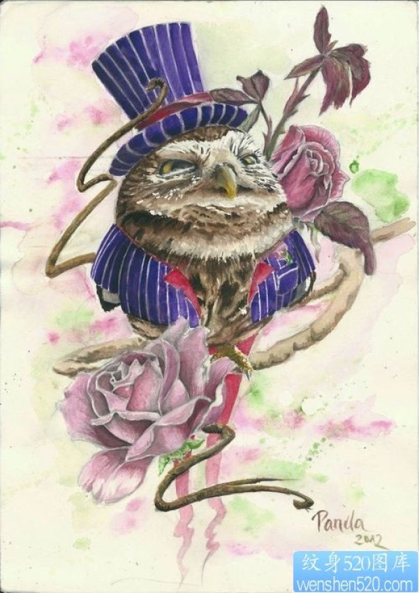 猫头鹰玫瑰花纹身图案_玫瑰花纹身图案大全_纹身图吧