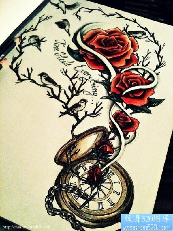 个性的玫瑰指南针纹身图案_玫瑰花纹身图案大全_纹身图吧