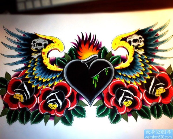 爱心翅膀玫瑰纹身图案_玫瑰花纹身图案大全_纹身图吧