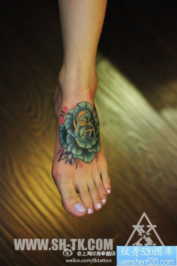 女人脚部漂亮的new school玫瑰花纹身图片_玫瑰花纹身图案大全_纹身图吧