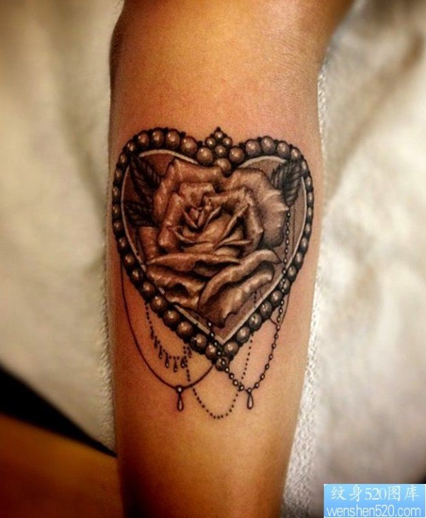 推荐一幅小臂爱心玫瑰花纹身图片_玫瑰花纹身图案大全_纹身图吧
