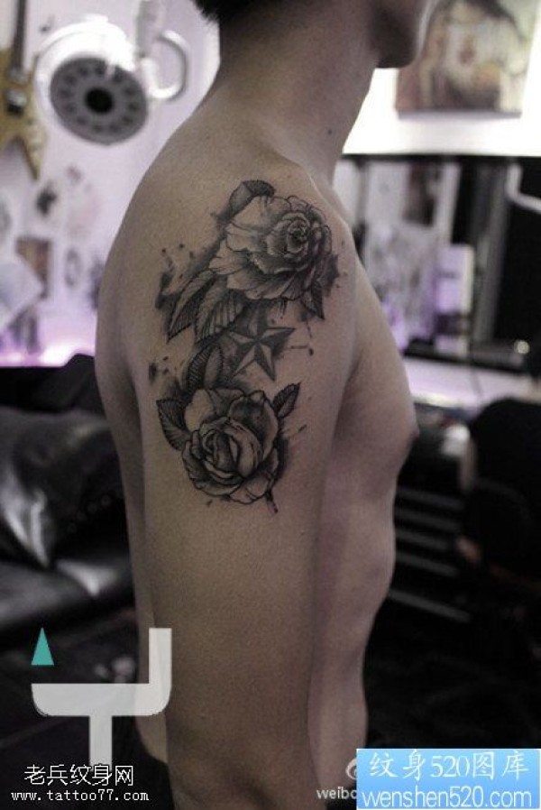 一款手臂黑灰玫瑰花纹身图案_玫瑰花纹身图案大全_纹身图吧