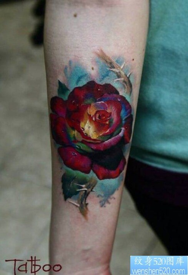 一款手臂彩色玫瑰花纹身图案_玫瑰花纹身图案大全_纹身图吧