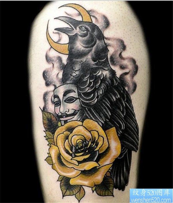 手臂玫瑰鸟纹身图案_玫瑰花纹身图案大全_纹身图吧