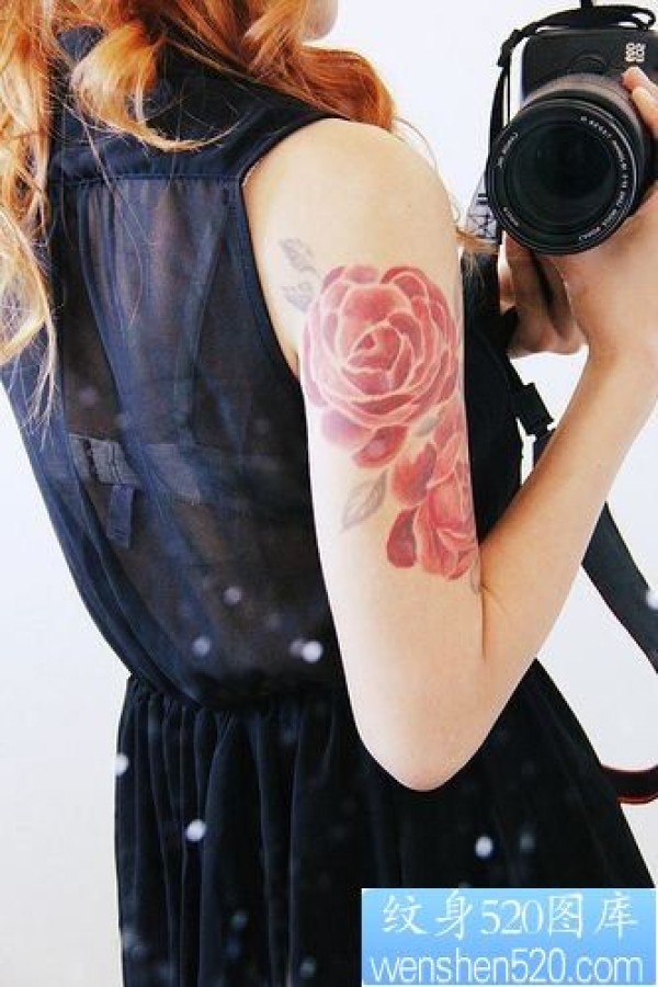 一款女性手臂彩色玫瑰花纹身图案_玫瑰花纹身图案大全_纹身图吧