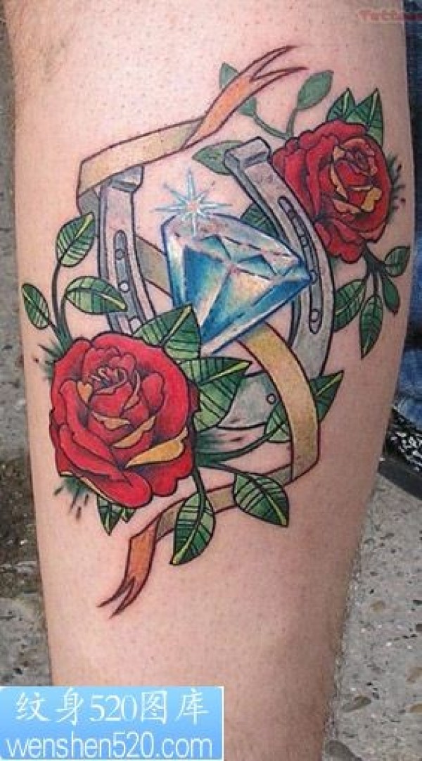 old school风格玫瑰花钻石纹身图案图案_玫瑰花纹身图案大全_纹身图吧