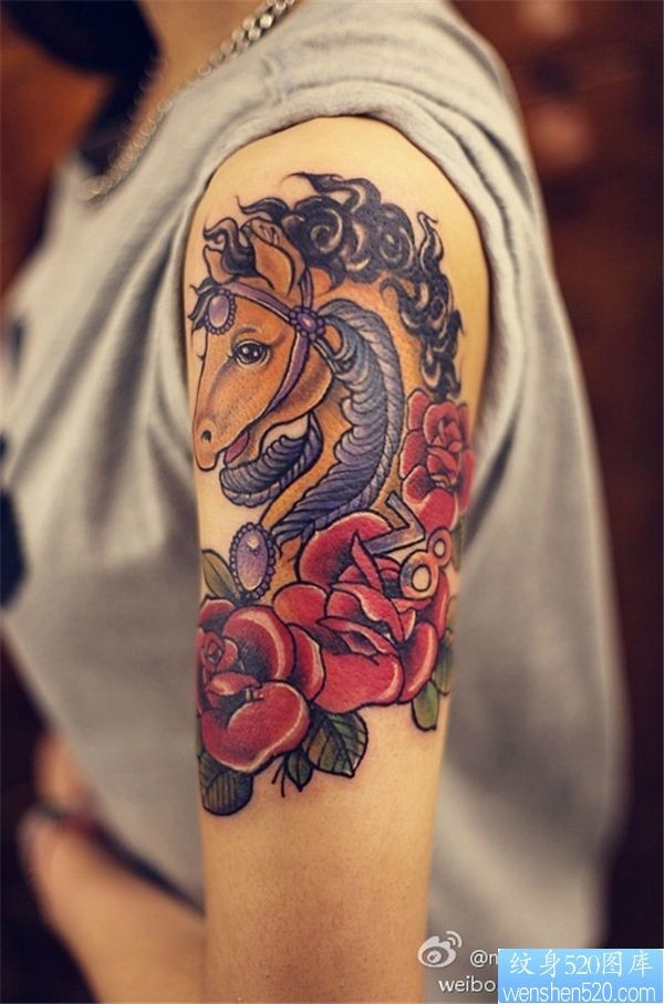 手臂彩色马玫瑰花纹身图案_玫瑰花纹身图案大全_纹身图吧