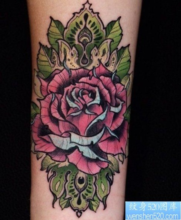 一幅胳膊彩色玫瑰花纹身作品_玫瑰花纹身图案大全_纹身图吧